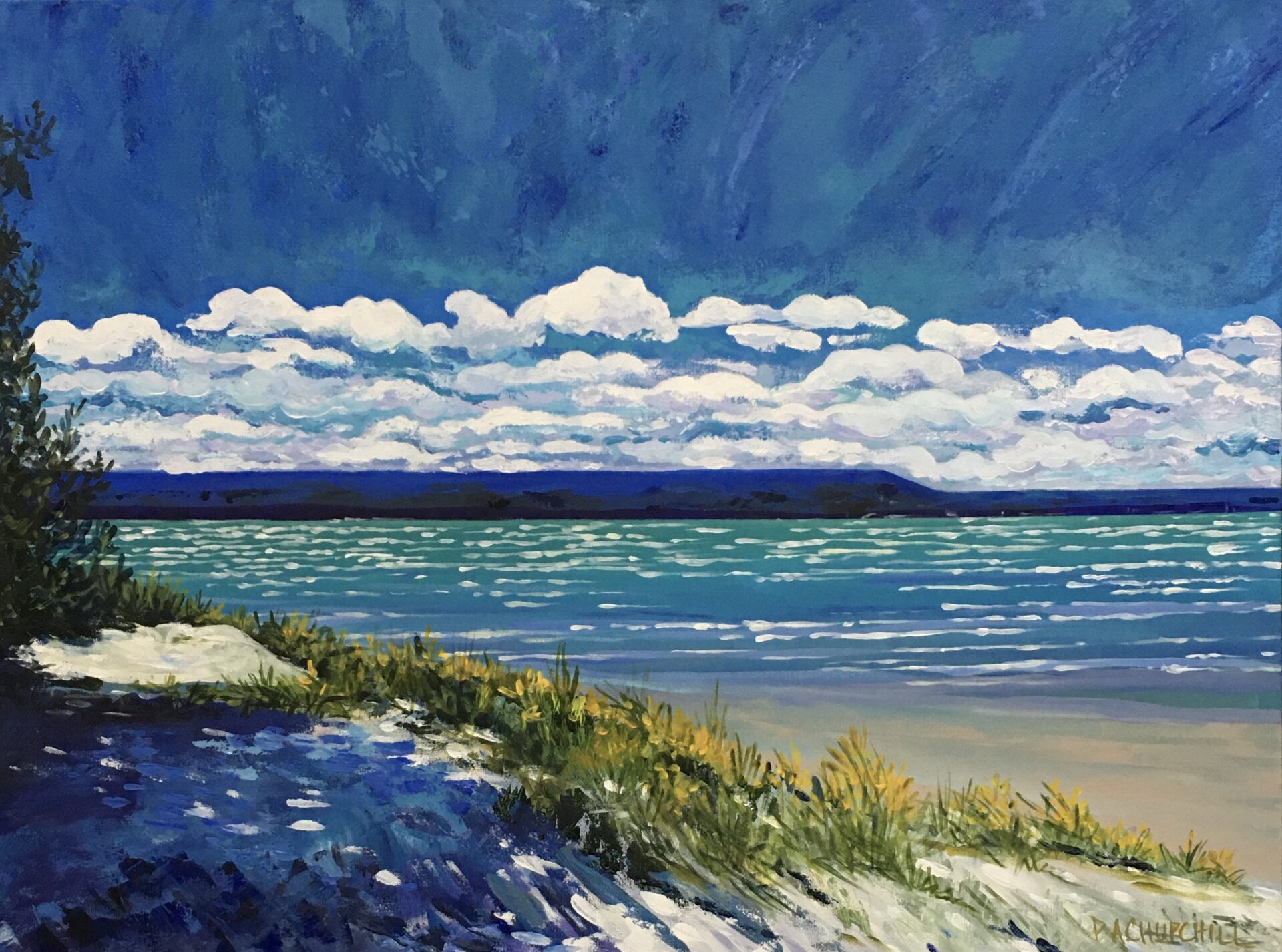 A lifelong passion for art & beauty inspired by her Mother (Artist & Painter), the American & French Impressionists, as well as Picasso’s interpretation of abstract design. Her extensive travels throughout the diverse North American landscape have also been a great inspiration. Experience working as a scenic movie painter, graphic designer & with interior designers, contractors & clients, helped to cultivate her love of vibrant colour, high contrast & clean edge design. The medium of acrylic, quick drying , it’s layering ability, brilliancy & textural properties make it perfect for her current evolving style. Presently living and painting in Collingwood surrounded by the stunning beauty of the Georgian Bay Area. Truly inspiring!