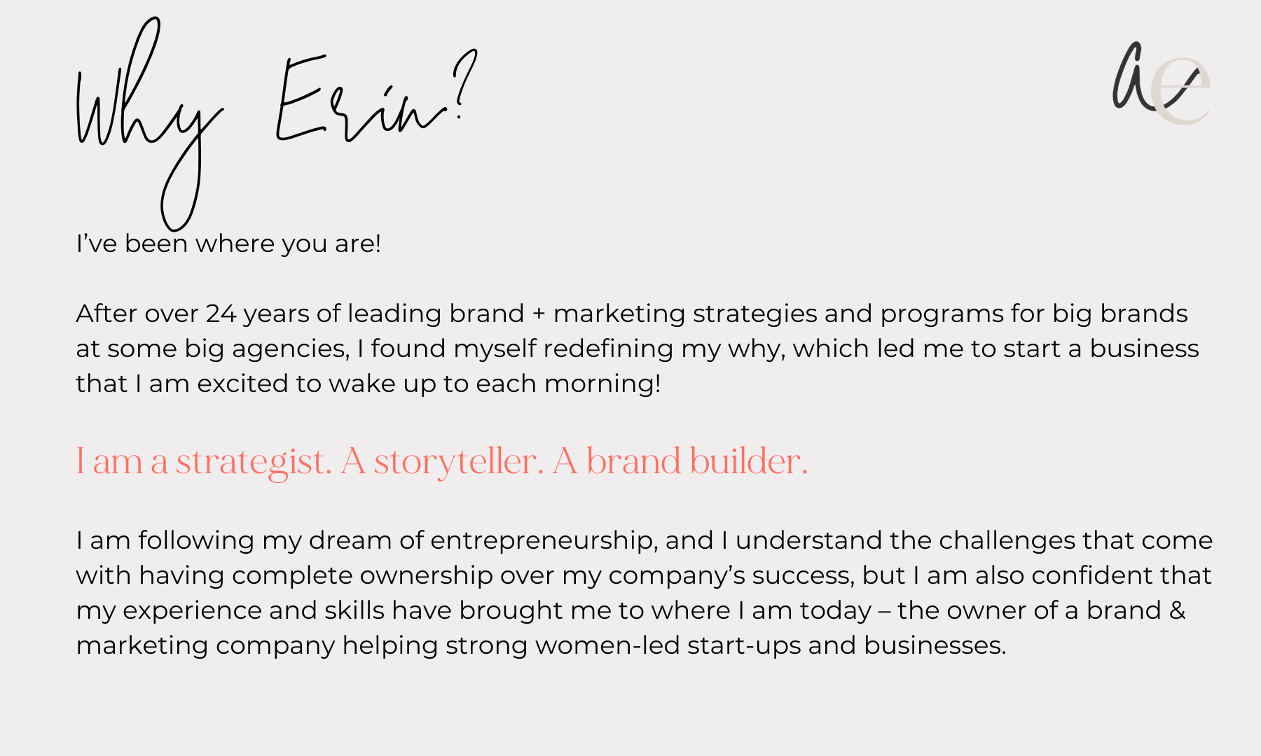 I specialize in strategically building brands, businesses and marketing communications.  I offer a unique blend of creativity and analytical thinking to my client’s businesses, so whether it’s defining/redefining your brand identity, optimizing your communication channels, or devising a business strategy for growth, I excel in distilling complex concepts into actionable plans.
