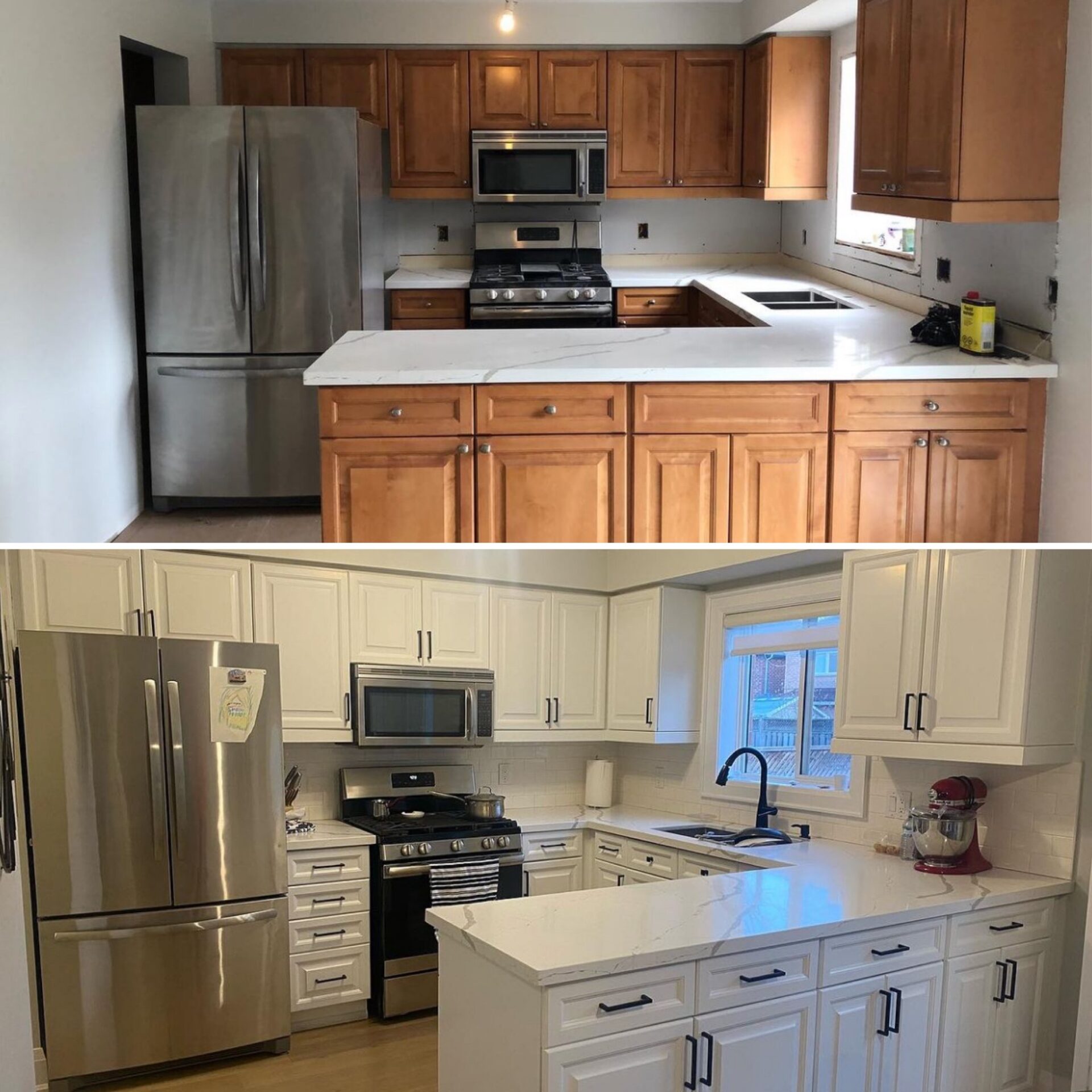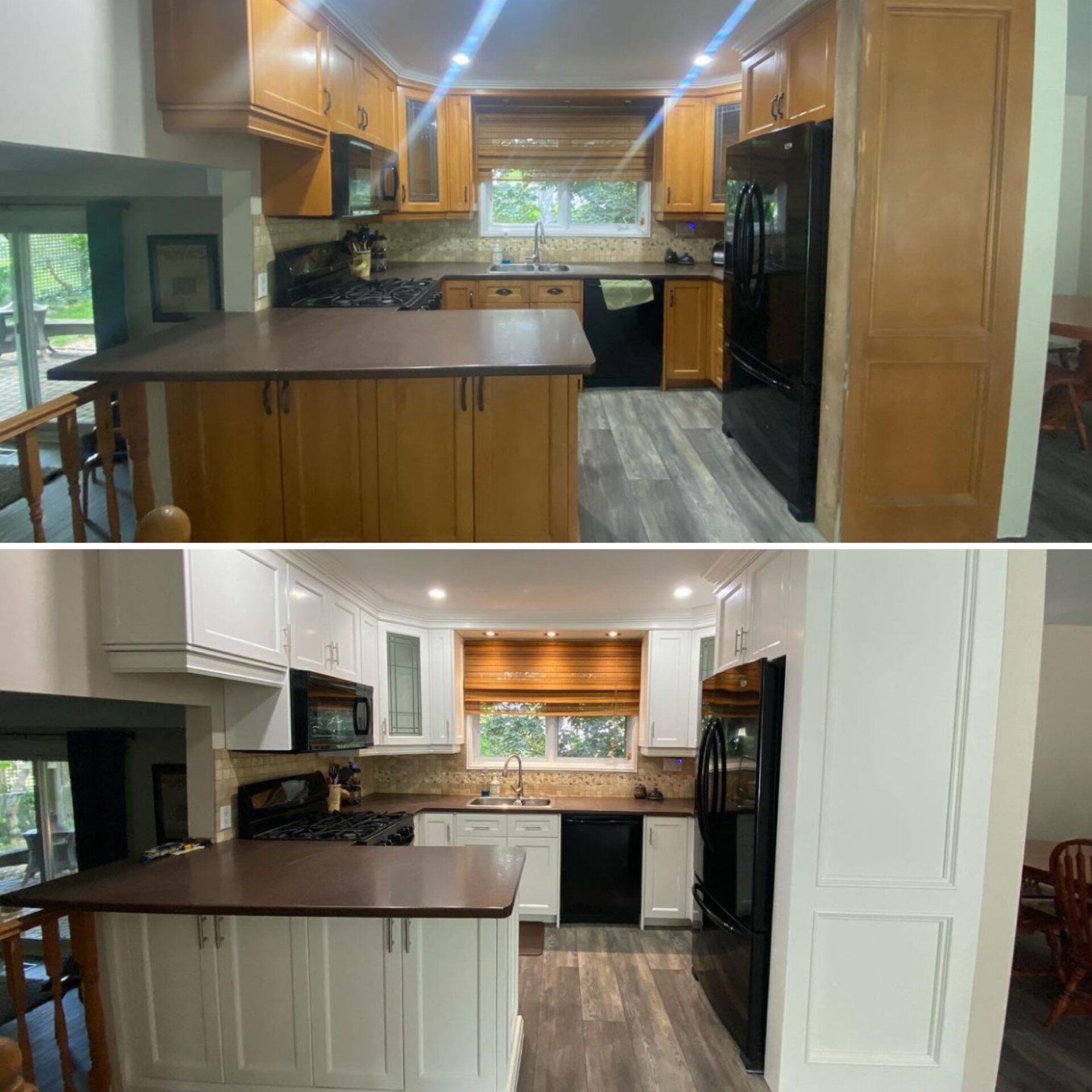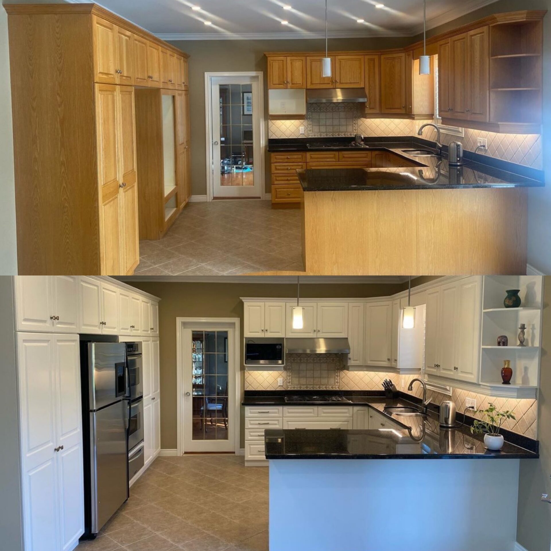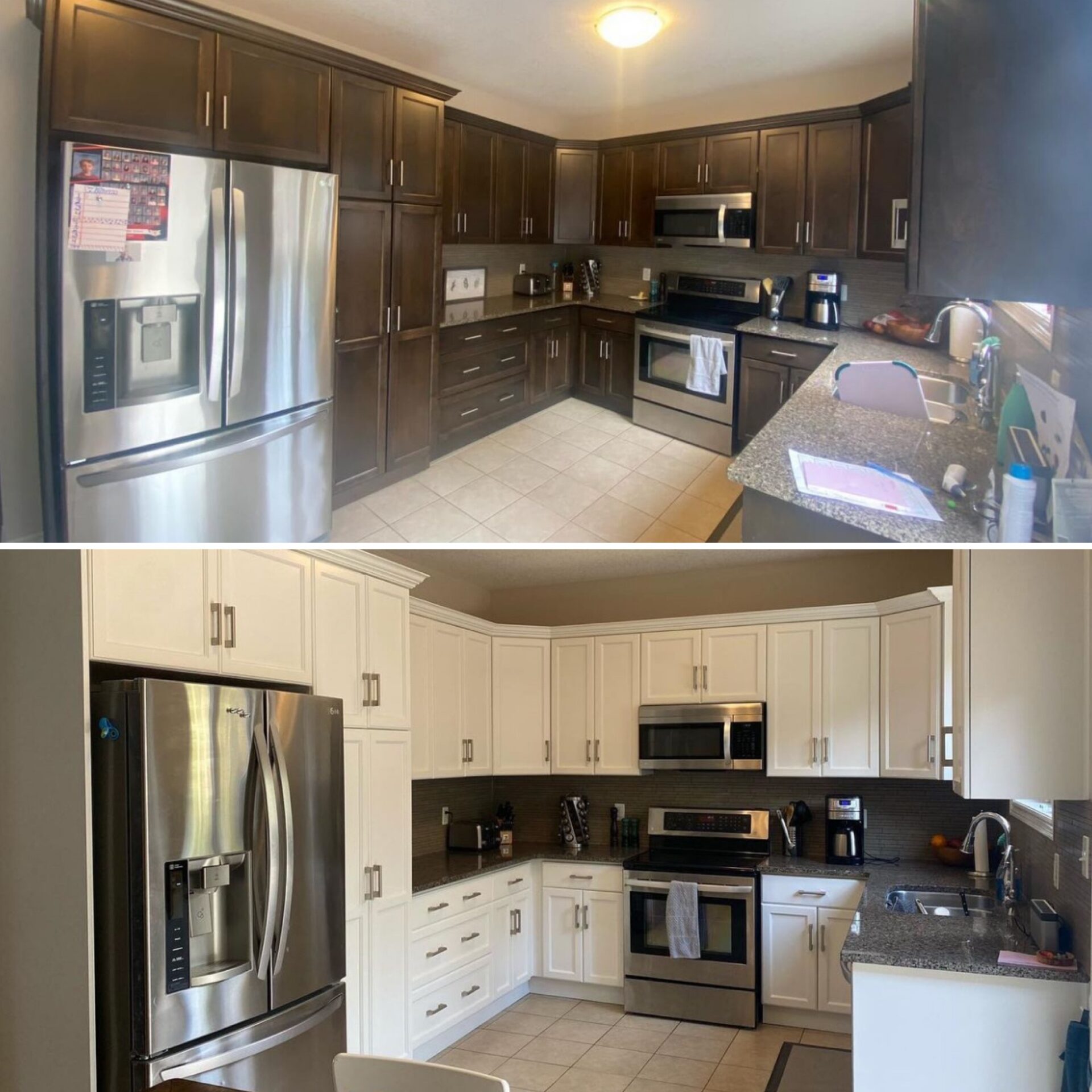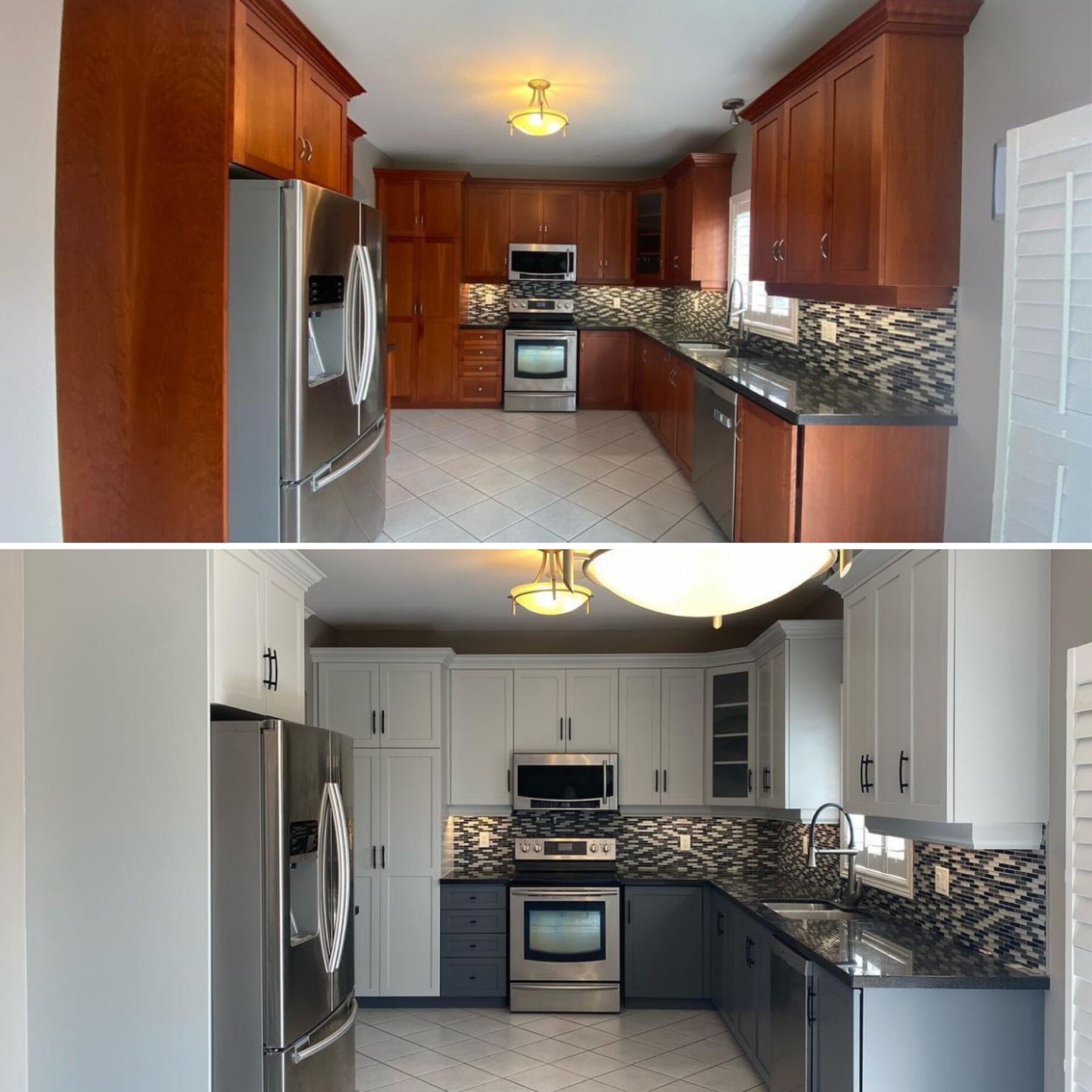 A kitchen remodel can be a long, tedious, and expensive experience. With refinishing kitchen cabinets we make use of what’s already there, and simply change the colour to bring out the best in your kitchen.